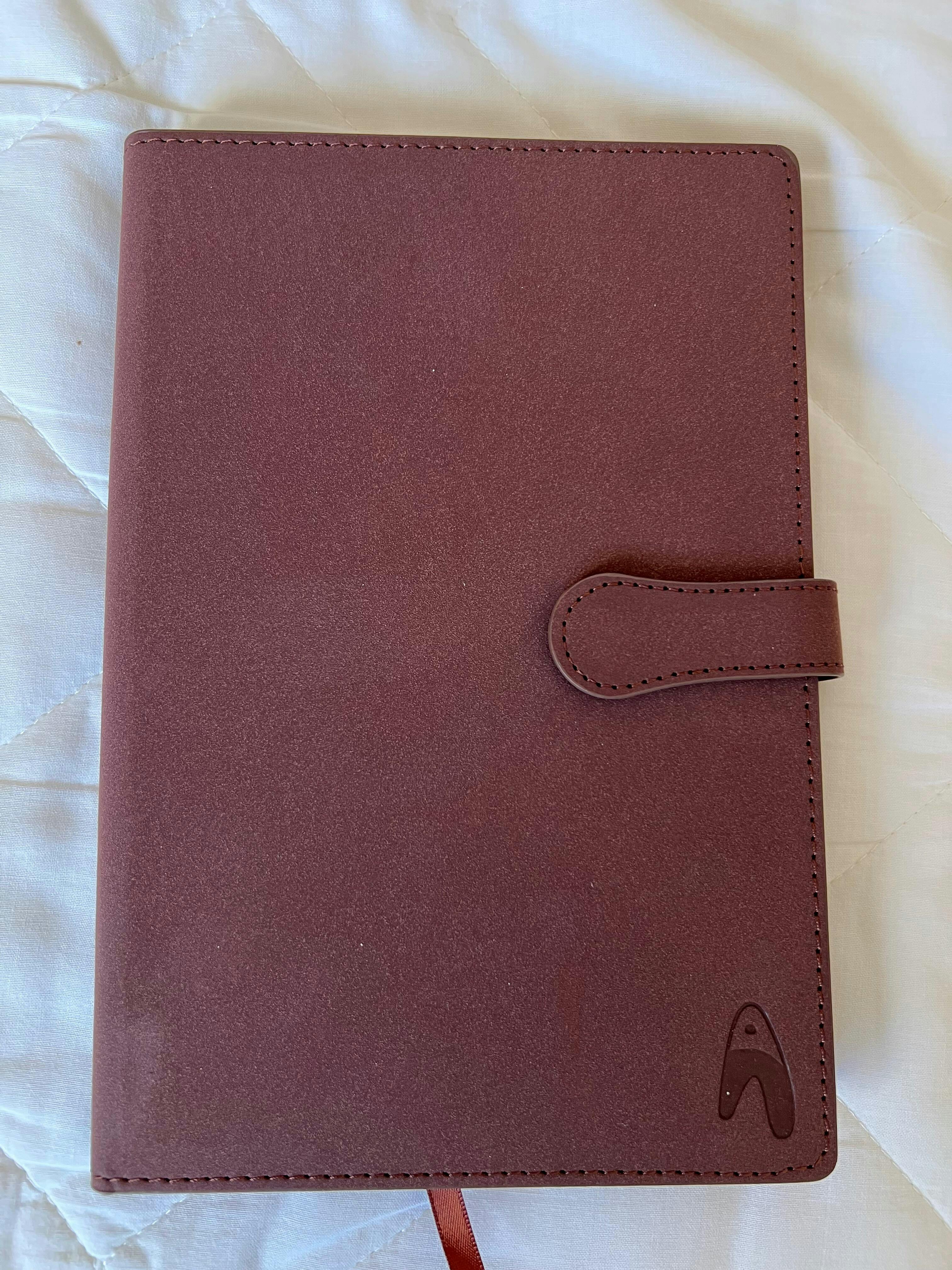 Tolles Design, der Kunstlederumschlag wirkt hochwertig und liegt gut in der Hand. Der Magnetverschluss ist praktisch und unauffällig. Innen einfach liniert ohne Extras – genau richtig für Notizen oder Planungen. Das Papier ist ausreichend dick und der Einband wiederverwendbar. Für den Preis ein schickes, schlichtes Notizbuch, das wertig aussieht und alltagstauglich ist.