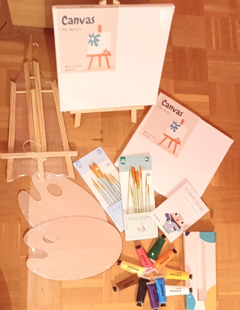 Muy buen kit para pasar un rato creativo en pareja o con peques. Viene completísimo: lienzos, caballetes, paletas, pinceles y pinturas, todo bien presentado en su caja. Me sorprendió la calidad de los pinceles y lo cómodo que es trabajar con los mini caballetes. Es un regalo ideal para hacer un “plan creativo” en casa, tipo tarde de arte, y además queda un recuerdo bonito al terminar las pinturas. Recomendadísimo para fomentar la creatividad y pasar tiempo divertido juntos.