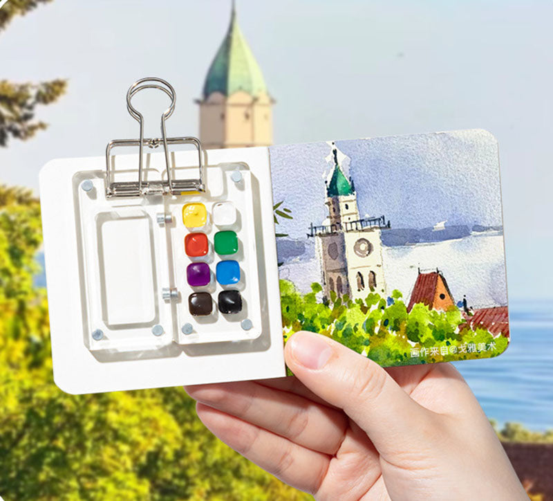 Descubre la libertad de pintar donde quieras con nuestro kit de acuarela portátil, diseñado para ofrecer una experiencia creativa completa en cualquier lugar. Este set incluye una libreta de 300 gsm y tamaño 12x12 cm, perfecta para técnicas húmedas como acuarela, tinta o pintura acrílica. Su papel de alta calidad permite trabajar con detalle o espontaneidad, según el estilo del artista.